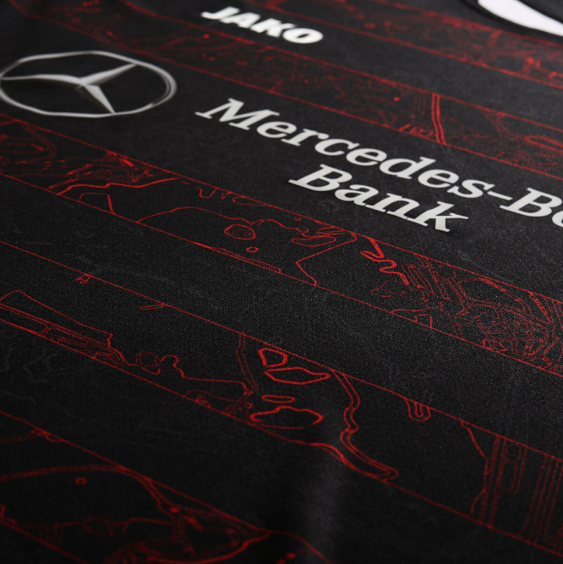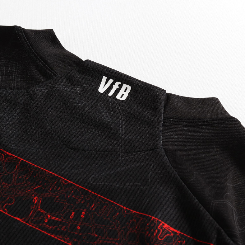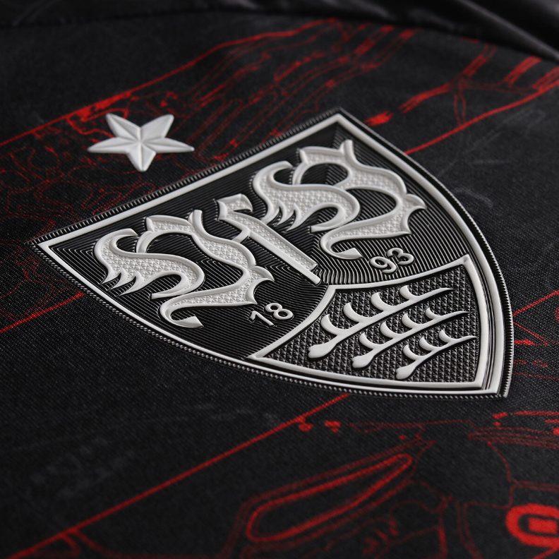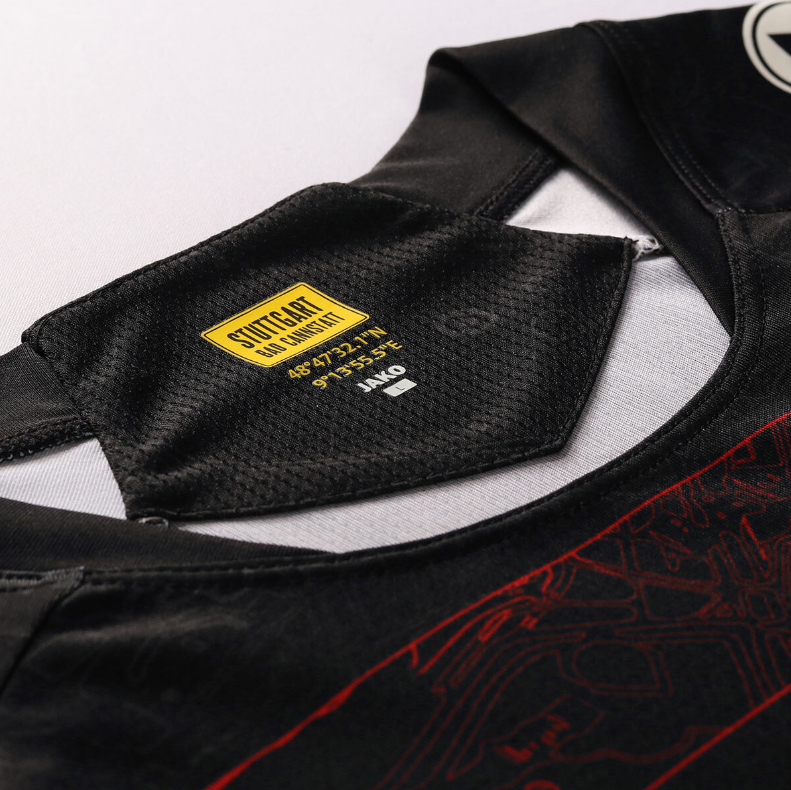 Das Design des VfB Stuttgart Trikot Away ist dem Stuttgarter Stadtplan nachempfunden und das Herzstück, die Mercedes-Benz-Arena, direkt unter dem Wappen im Brustbereich platziert. Wie beim VfB Heimtrikot ist auf der Innenseite des Nackenbandes ist das Ortsschild „Bad Cannstatt“ platziert, auf der Außenseite ist das VfB Nackenprint zu sehen. So schaffen die Themen Heimat und Verein ein unverwechselbares Trikot. Wappen und alle Veredelungen sind beim Auswärtstrikot im einheitlichen Farbton gehalten. Der hohe Elasthan-Anteil im Schulterbereich garantiert großen Tragekomfort.