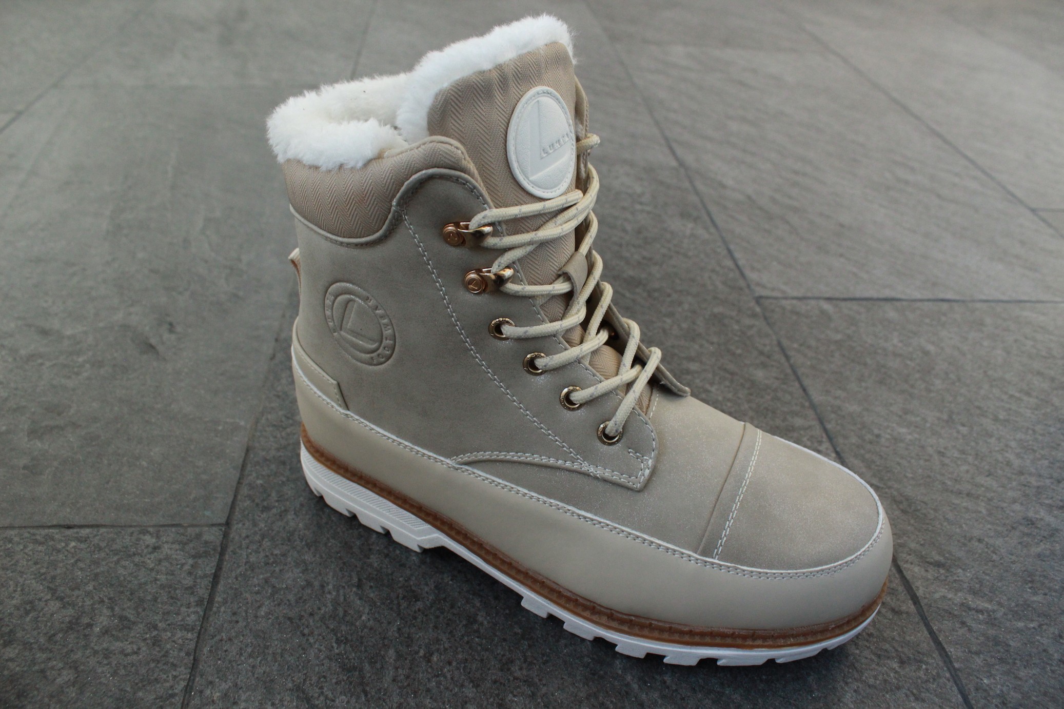 Luhta Reilu Ms -Mid-Cut-Schuhe. Damen-Winterschuhe mit Schnürung und warmem Futter. Wer in Zeiten des urbanen Lifestyles nicht auf Wärme und festen Tritt verzichten möchte, findet in den Luhta Reilu MS Stiefeletten die Lösung. Der Schaft des Schuhs besteht zum größten Teil aus umweltfreundlichem wasserbasiertem PU-Material, das Leder ähnelt. Die Gummilaufsohlen sind flexibel und haben ein effizientes Profil, während das weiche Futter aus Textilfell auch an kalten Wintertagen die Füße warm hält. Die A.W.S. Coolnet Felt Einlegesohle mit wärmender Filzoberfläche sorgt für optimalen Tragekomfort, indem die atmungsaktive Wabenstruktur Feuchtigkeit nach außen transportiert, und gleichzeitig hervorragende Dämpfung und Stützung der Füße schafft.