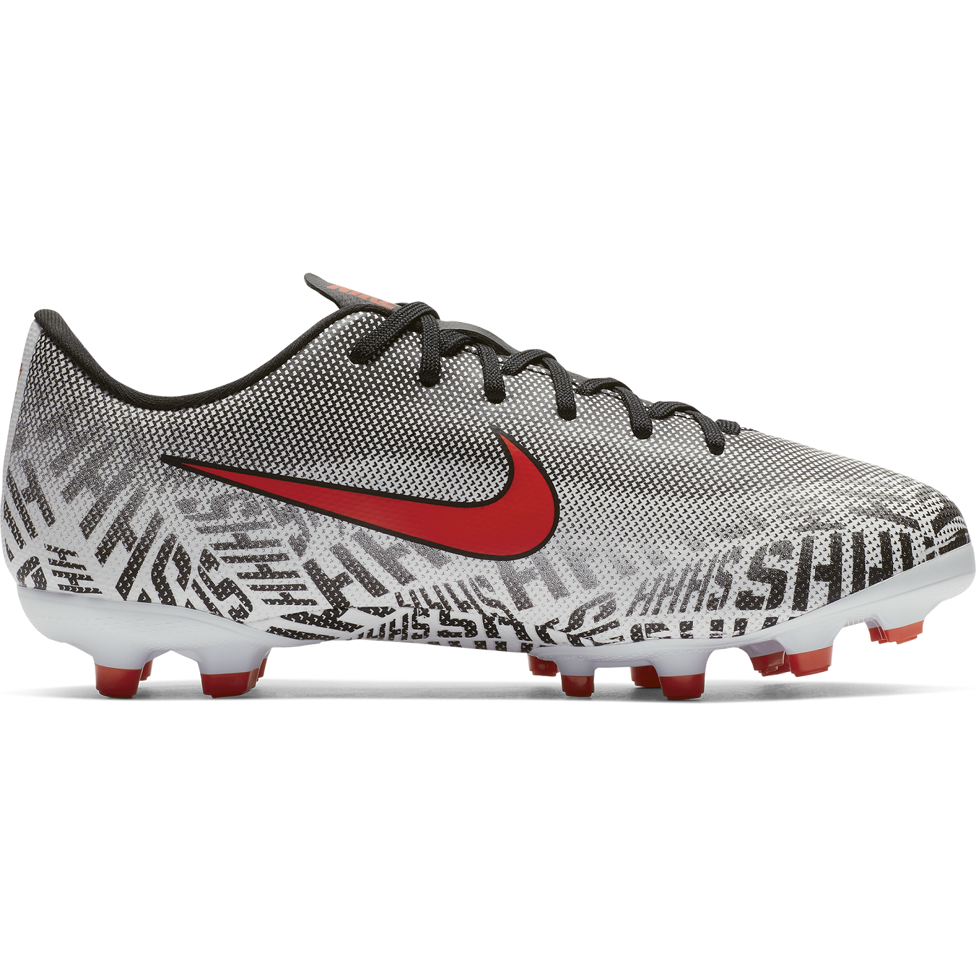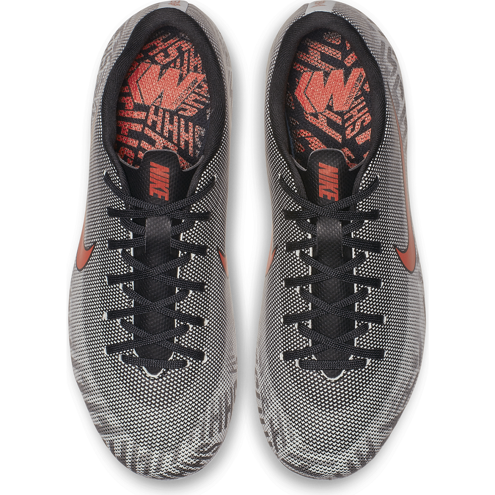 Der Nike Jr. Mercurial Vapor XII Academy Neymar Jr Fußballschuh für verschiedene Böden für jüngere/ältere Kinder sorgt mit einem synthetischen Obermaterial für eine stromlinienförmige Passform. Die mikrotexturierte Oberfläche ermöglicht ein präzises Ballgefühl bei hohen Geschwindigkeiten.- Eine vielseitige Sohle für verschiedene Böden sorgt für Traktion auf Spielflächen mit Rasen und Kunstrasen. Die Details feiern den Spielfluss und Rhythmus der brasilianischen Spielweise, die Neymar verkörpert.