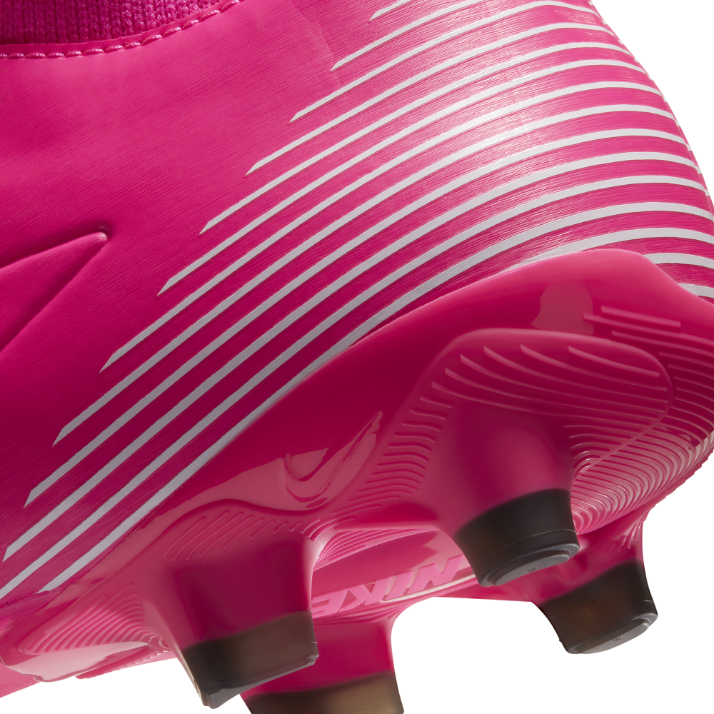 Der Nike Mercurial Superfly 7 Academy Mbappé Rosa MG besticht mit Designdetails des Mercurial Superfly 4 – einem Lieblingsschuh von Kylian Mbappé. Das strukturierte Material gewährleistet ein präzises Ballgefühl bei hohen Geschwindigkeiten. spezielle Traktion ermöglicht Wechsel zwischen den Oberflächen.