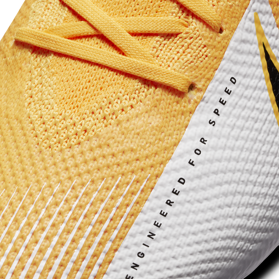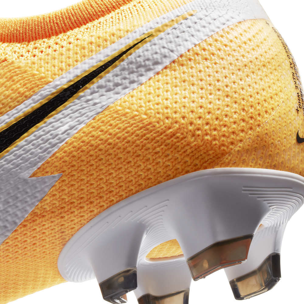 Der Nike Mercurial Vapor 13 Pro FG basiert auf der 360-Grad-Flyknit-Innovation des 12. Er besticht durch eine Nike Aerotrak-Zone im Vorfuß, um die Traktion zu verbessern.
